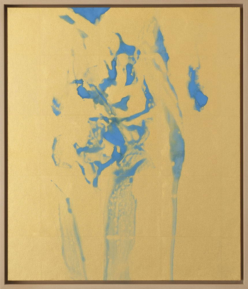 Mineral pigments (azurite), gold leaf on Japanese paper